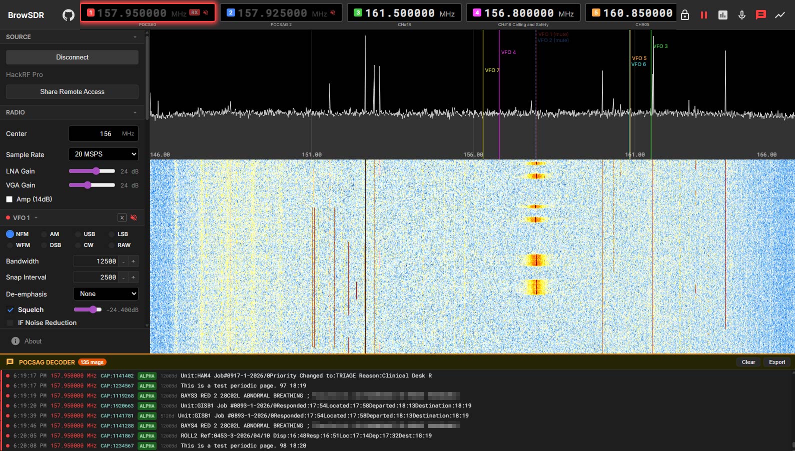 BrowSDR Interface with POCSAG Decoding