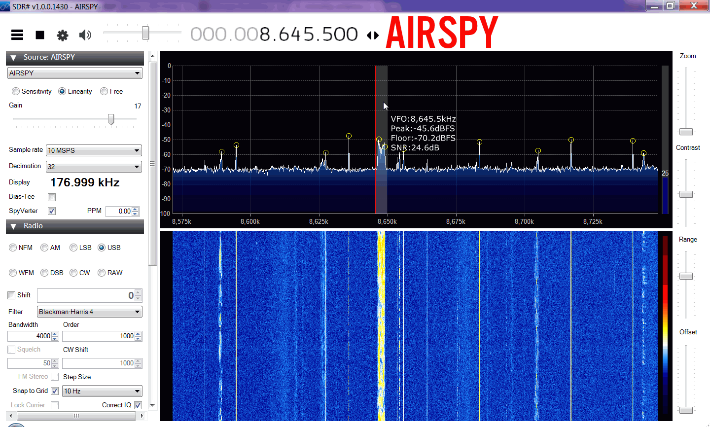 | Offset (MHz) | Airspy (Higher is better) | RSP (Higher is better) |
