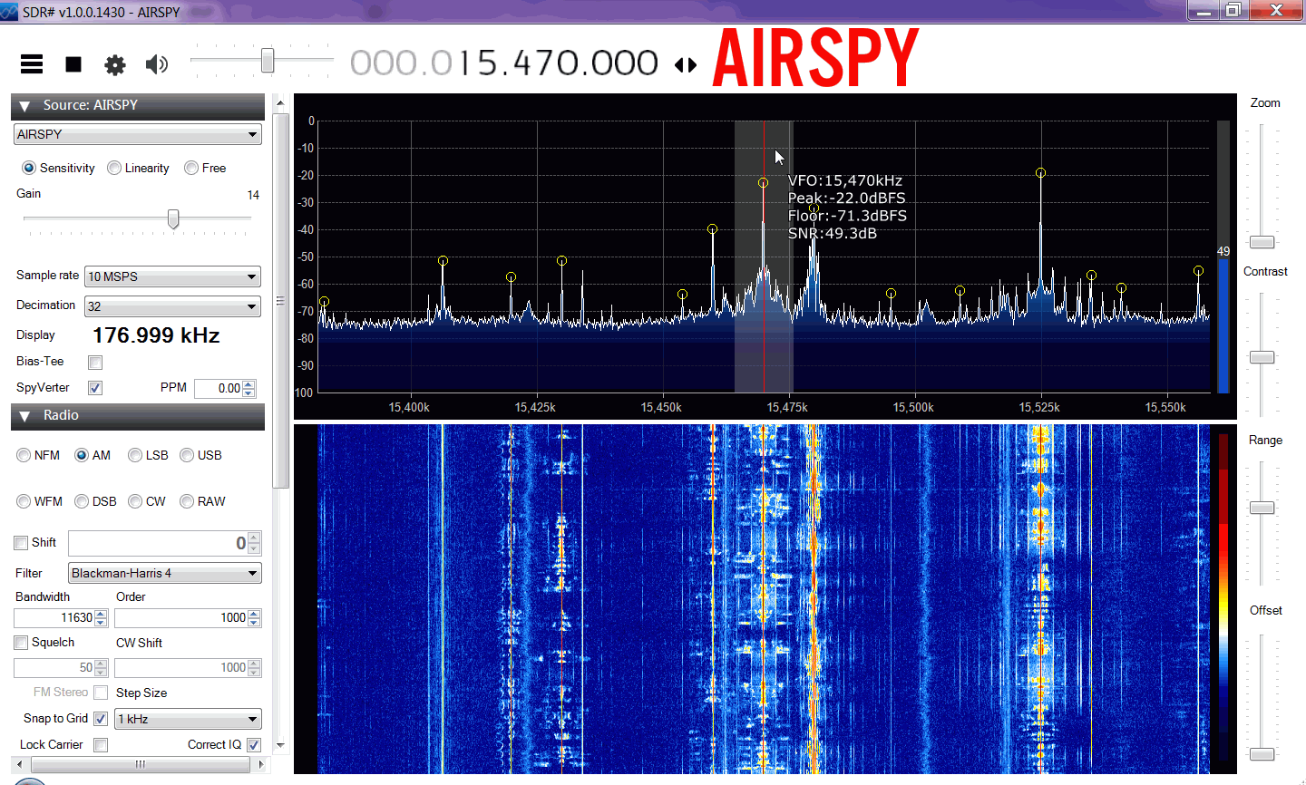 At 15 MHz there was again no real discernible difference between the Airspy and RSP.