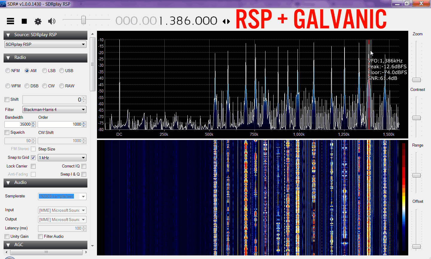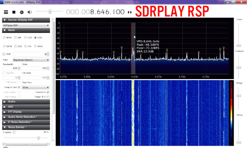 We also noticed that the RSP had significant imaging problems when the Zero IF (ZIF) mode was used. However, when the Low IF (LIF) mode was used there were no images. In the LIF mode the maximum bandwidth is restricted to 1.536 MHz, but for HF this is okay, since we need to use lower bandwidth's to be able to accurately view the very narrow band HF signals. Thus all HF tests performed on the RSP will mainly use the LIF mode to get the best results, but we did use ZIF mode in some tests where no images were seen.